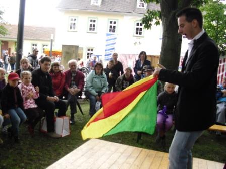 Kommen Sie mit mir auf eine "Reise durch die Zauberei". Der Name der Show ist Programm. Alles was für den Zauber benötigt wird befindet sich in einem Koffer. Ansonsten brauchen wir nur noch Sie. Das Publikum steht im Mittelpunkt der Show, Sie lesen richtig, Sie werden selbst zaubern. Lassen Sie uns gemeinsam auf diese Reise gehen. Lassen Sie Schwammbälle verschwinden, Tücher mit Hilfe der Magie verknoten, Gegenstände schweben und wenn Sie wollen, lesen wir auch gemeinsam in den Gedanken der anderen. Eine Show für Klein und Groß, ob Familien- oder Firmenfeier, Vereinsfest oder Stadtfest, ich verzaubere Ihre Gäste.